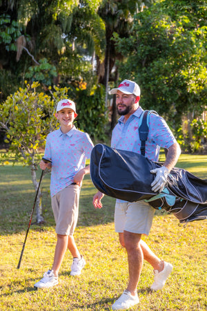 Our polos are built for everyday golfers relaxed, comfortable, and ready for anything. From kid's first swings to laughs with mates at the clubhouse. With a fit that balances style and comfort, they’re made to move with you, match your game, and even match the whole family. Golf’s better when you play it together.